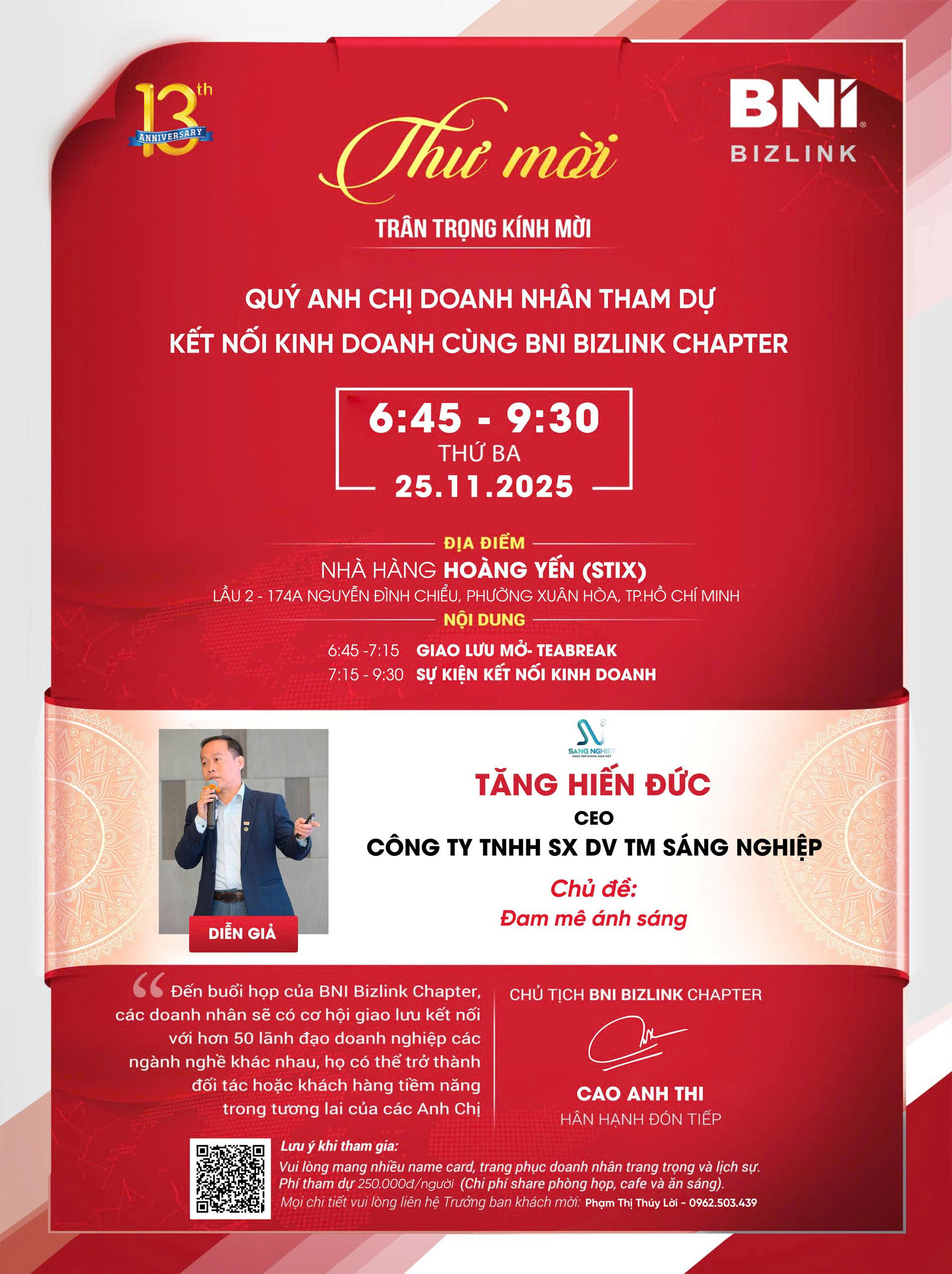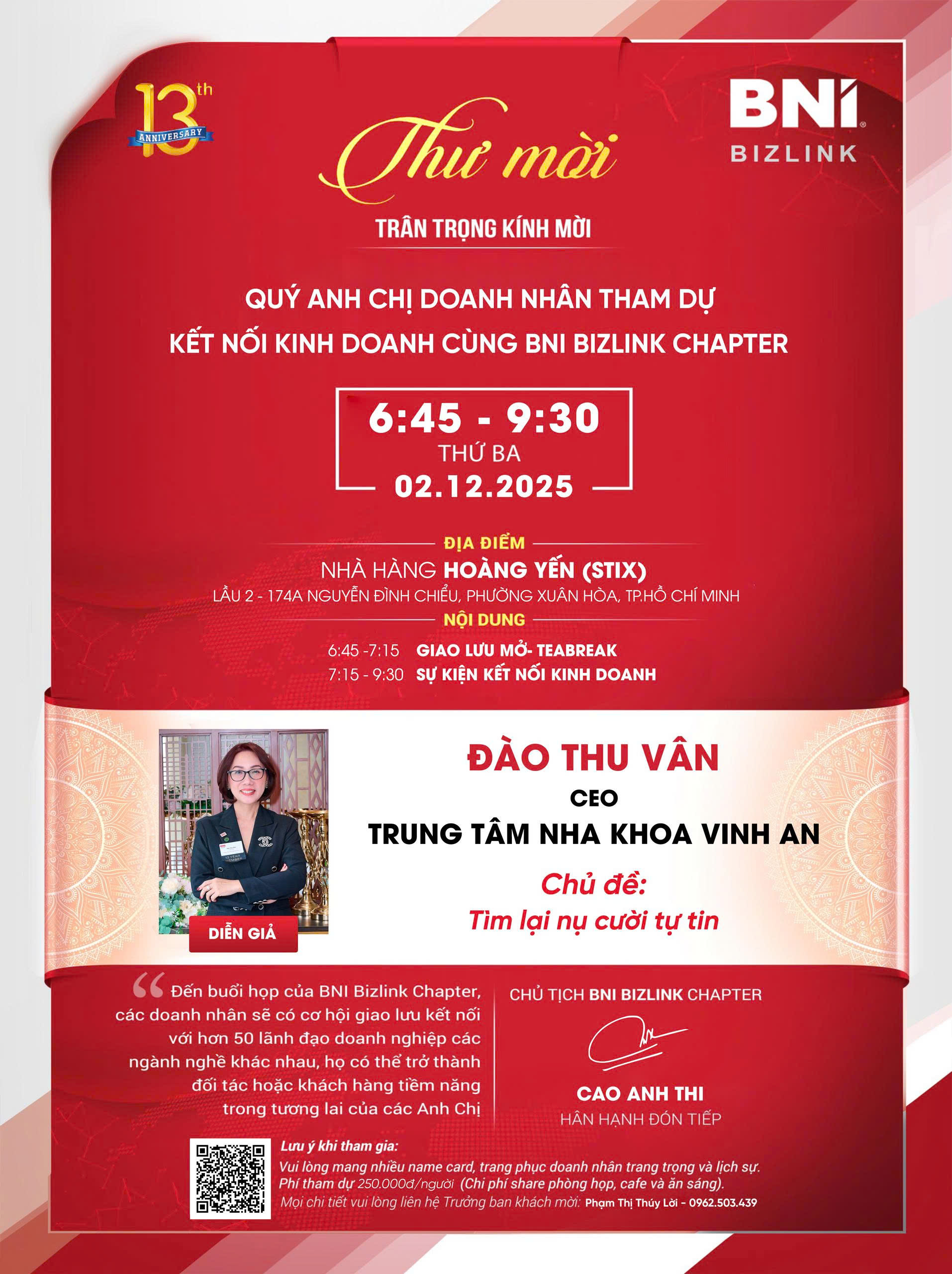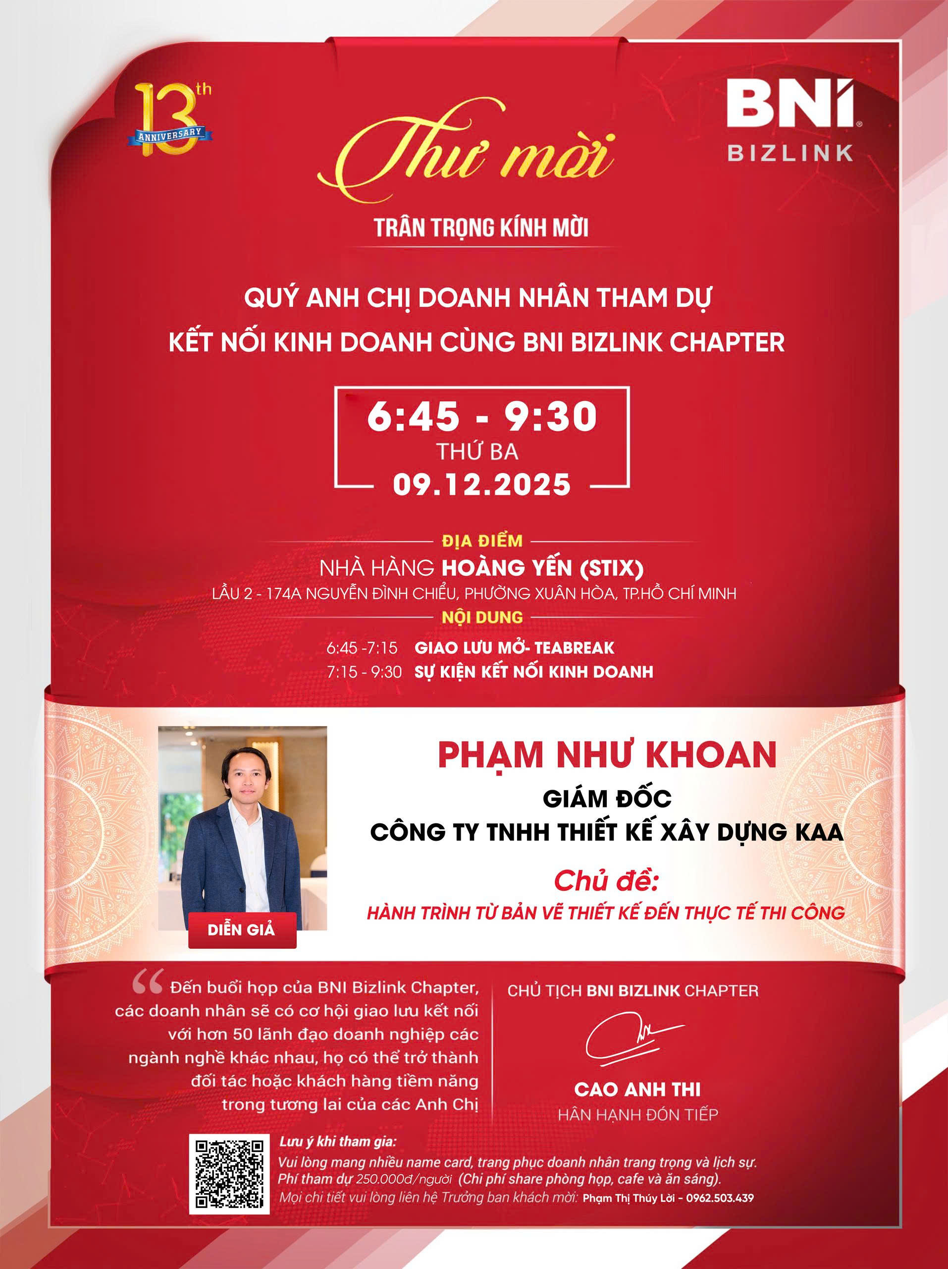 BNI Bizlink tin rằng sự kiện lần này sẽ mang lại nhiều giá trị thiết thực cho Quý Doanh nhân trên hành trình phát triển và đổi mới doanh nghiệp.